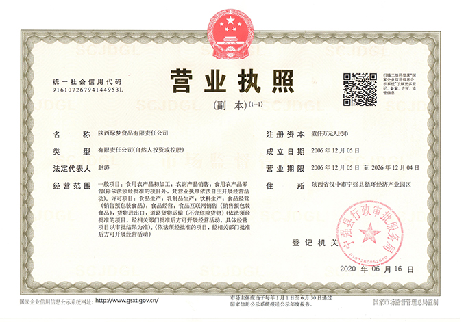 陕西绿梦食品有限责任公司